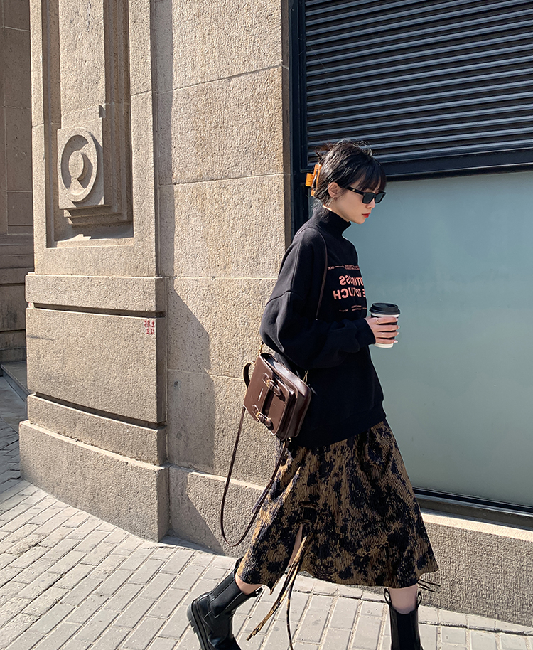 South Korea Open Fork Half Body Skirt Woman High Waist 2022 New Skirt Retro 100 Lap long version A character big swing dress