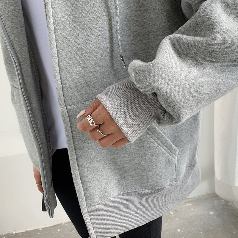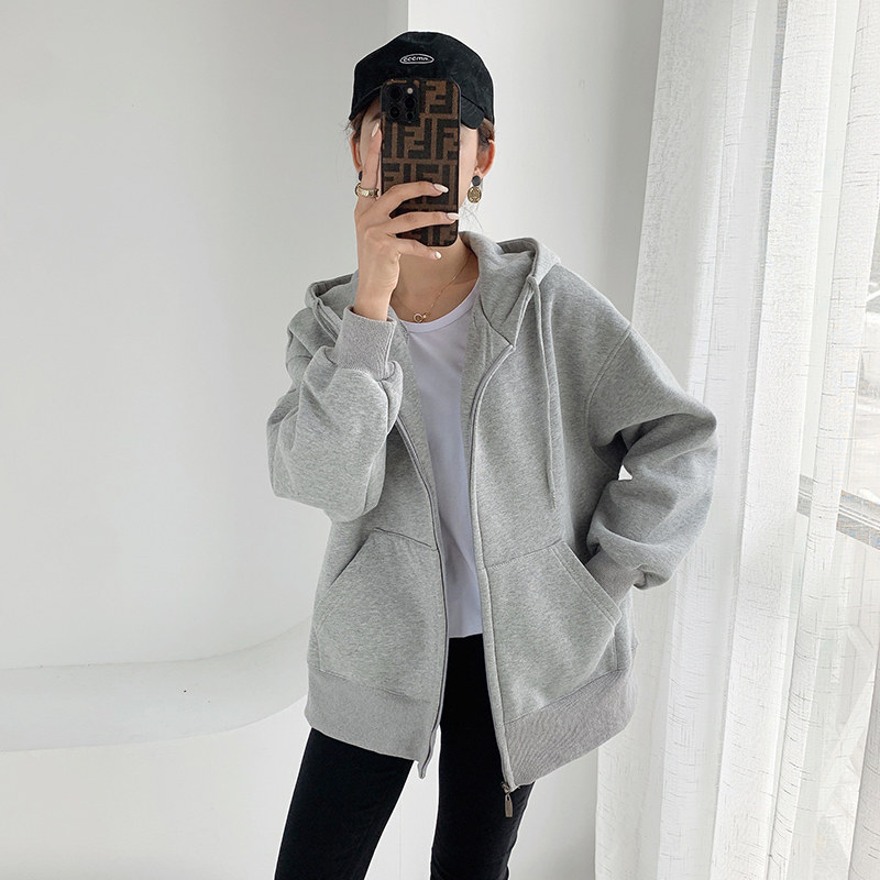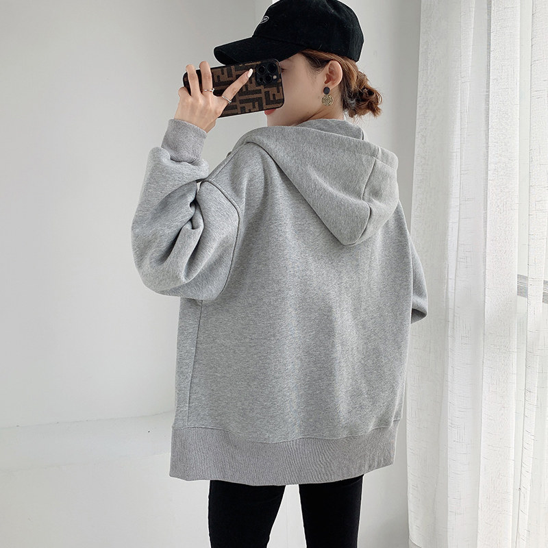 Laced grey thick cotton T jacket female spring autumn 2021 new even cap loose bf Lazy Breeze Cardio-cotton Blouse