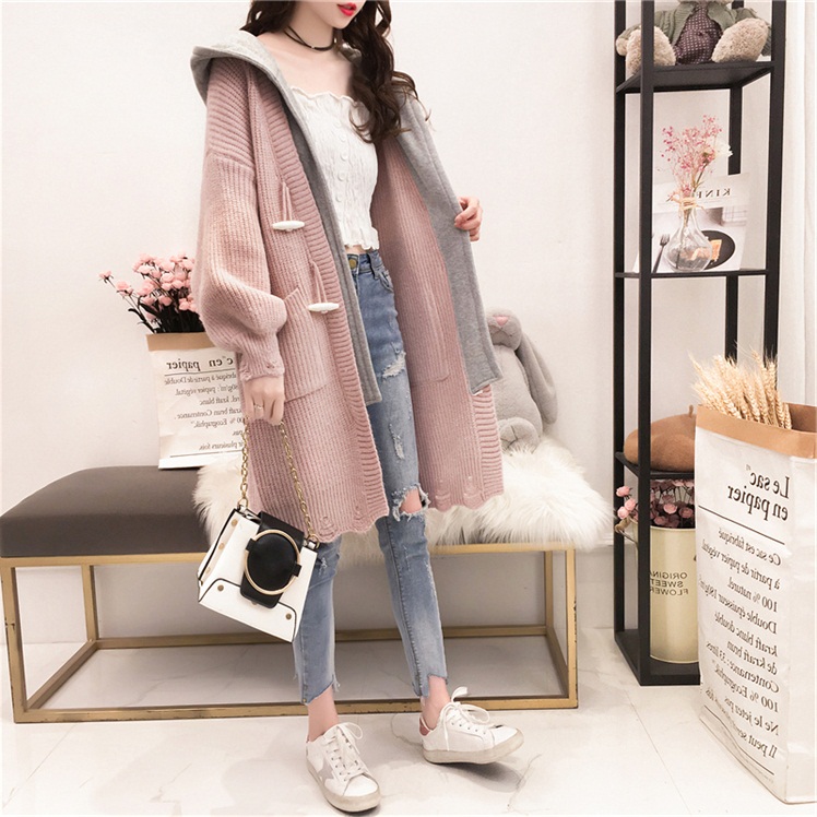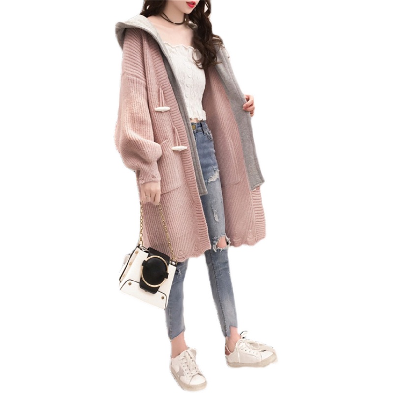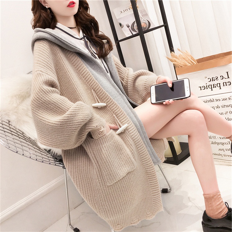 2022 autumn and winter new large size women's fat mm casual mid-length version thickened lazy wind hooded cardigan sweater coat