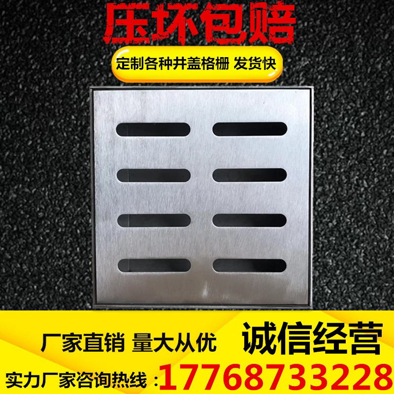 Customized 304 stainless steel cover rainwater tub drainage ditch decorated well cover sewage grid outside frame