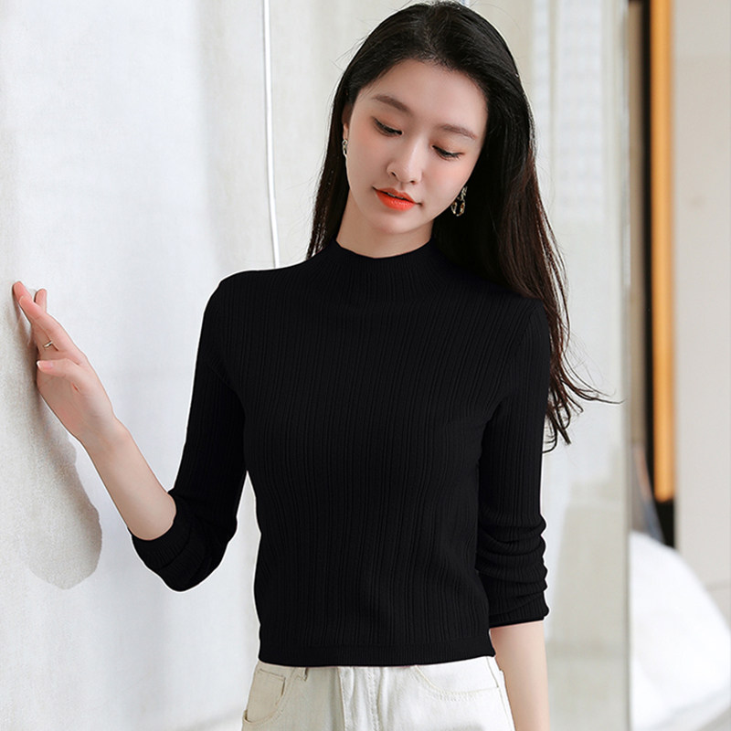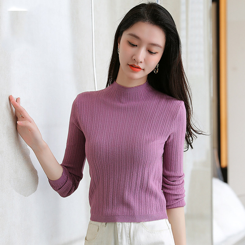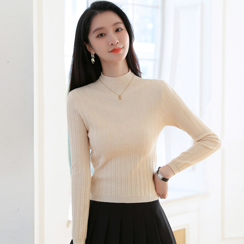 Half-height collar knit undershirt lady long sleeve early spring dress slim fit 100 lap fit small fur coat short jacket
