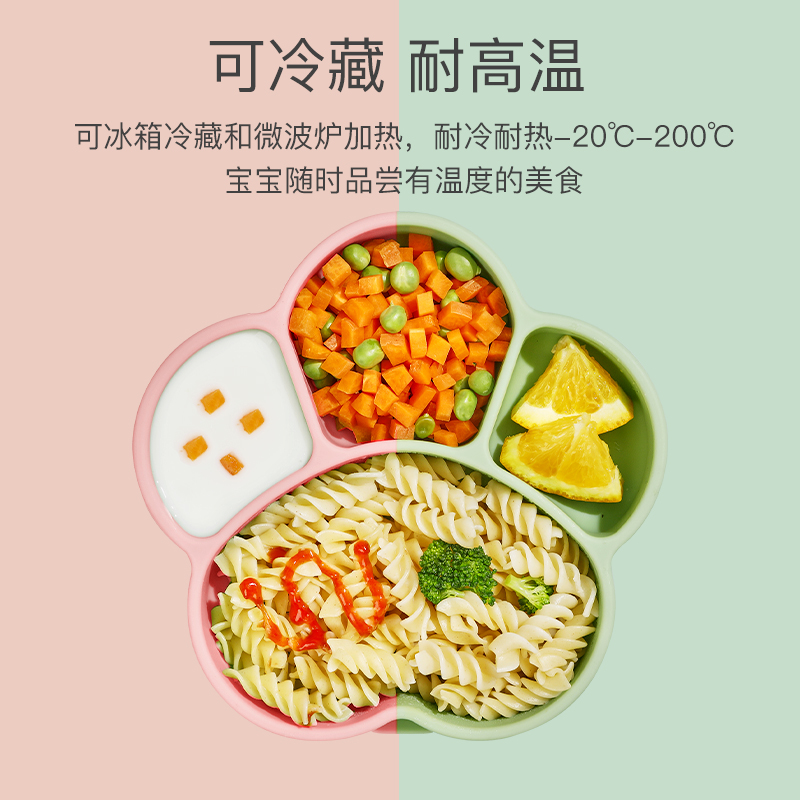Baby Tray Suction Cup Integrated Baby Baby Silicone Straw Bowl Compartment Disc Learning Meal Training Spoon Tableware Set