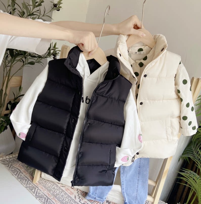 2021 Autumn Winter Children Thicken Vest Large Children Outside Wearing Down Cotton Waistcoat Boy Girl Girl New Manclip Warm