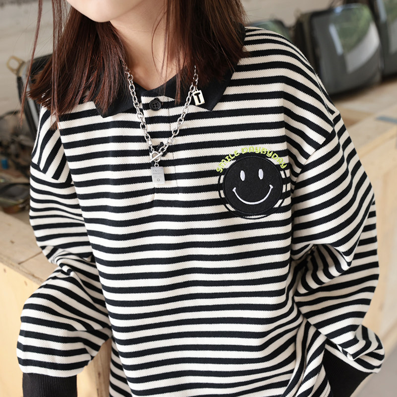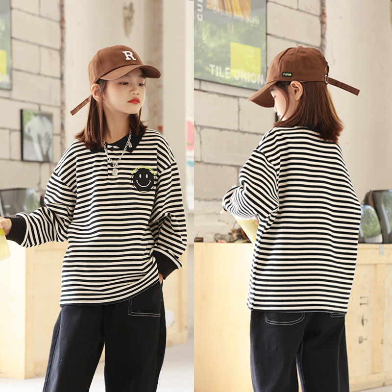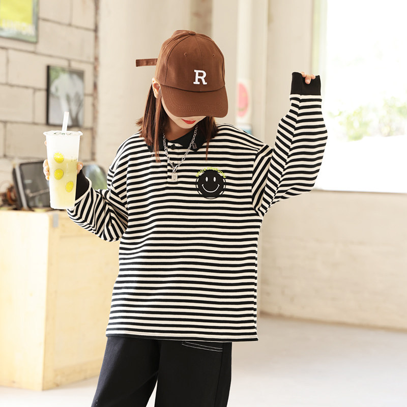 Girl's thick T-shirt spring autumn clothing 2022 new Korean version of the Korean version Children's Polo shirt striped long sleeve T-shirt tide