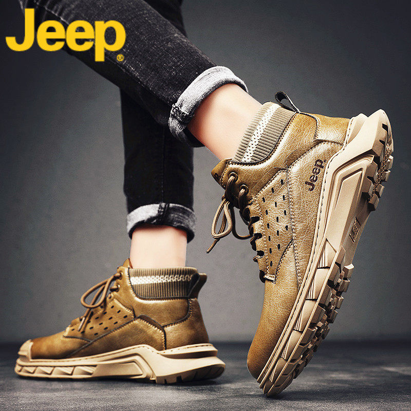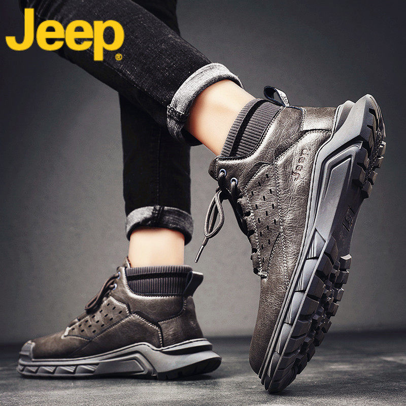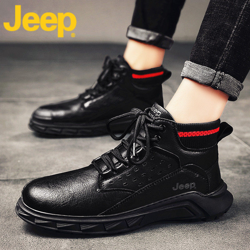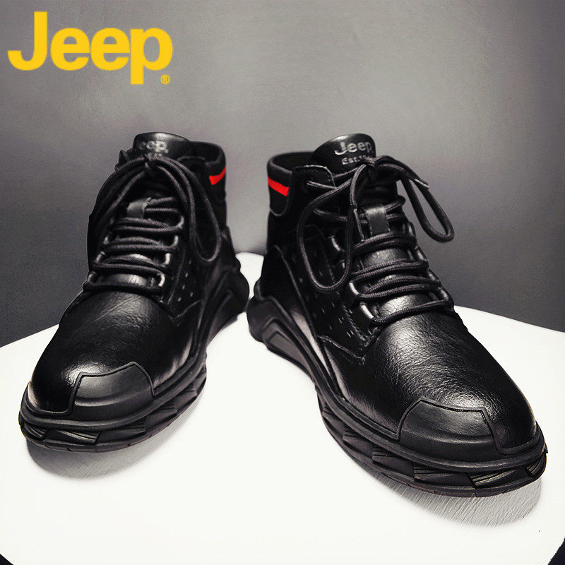 jeep jeep martin boots men's high-top men's shoes winter leather mid-tube black snow tooling leather boots men