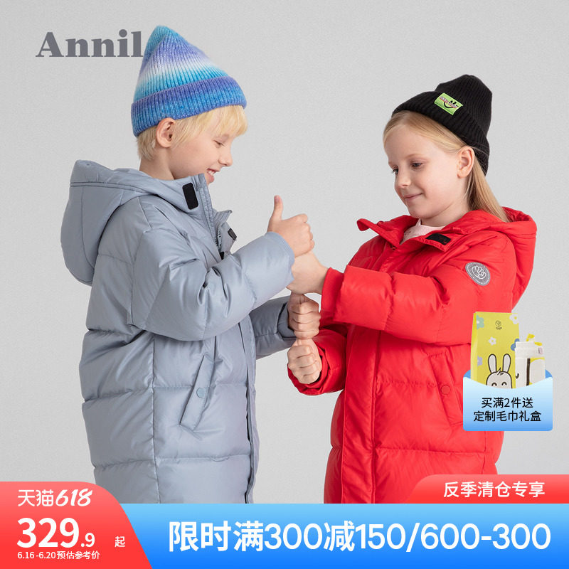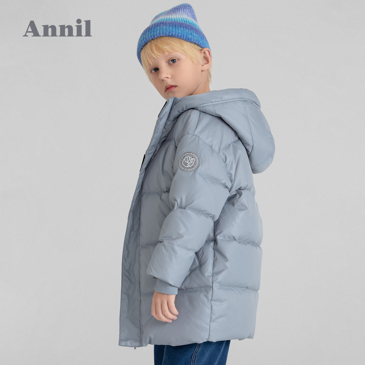 Annil Boy Clothing Boy Duvet Suit Medium Long Winter New Thickening Trendy Warm Mid Boy Hooter Jacket