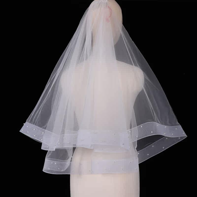 Fashion simple double comb covering veil high-grade nail white bride marriage and accessory short