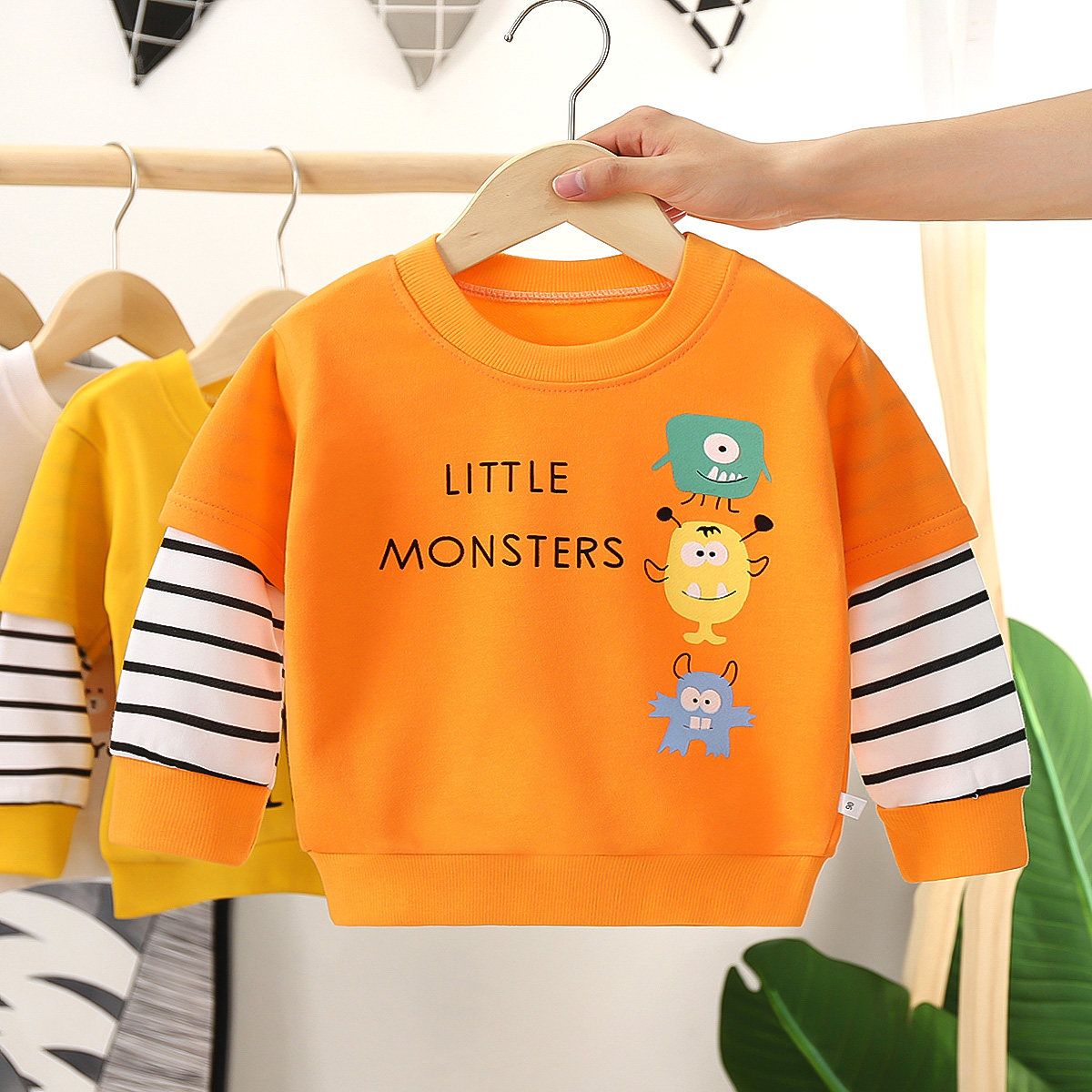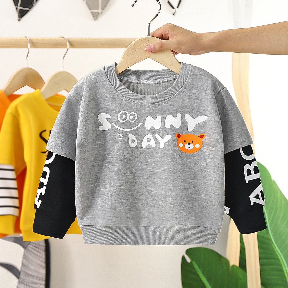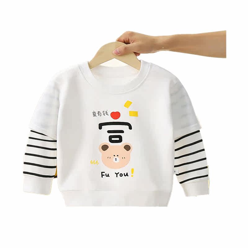 1 - 6 year old children autumn new thick cotton T - shirt T - shirt baby's head list tops children in the children's puppet