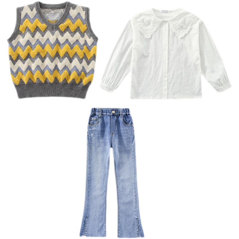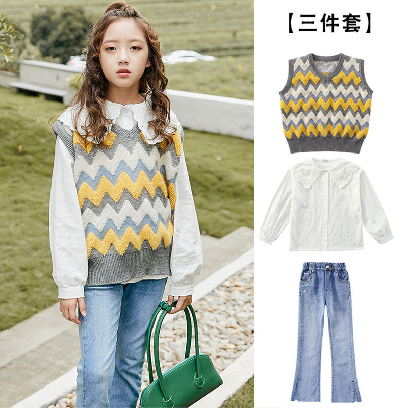 Children's spring and autumn clothes net red suits Western style 2022 new girls Korean version of autumn and winter fashionable three-piece suits in the big children's tide
