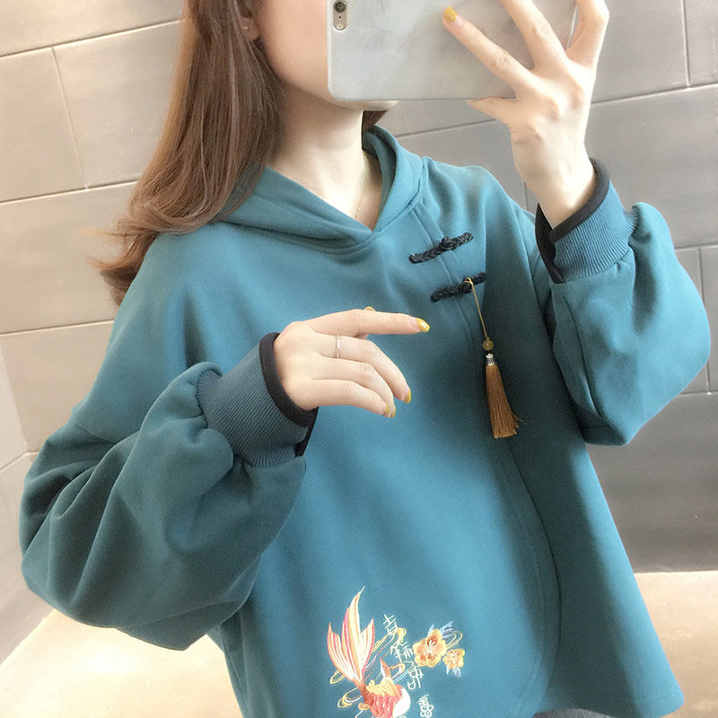 Pregnant Woman Autumn Clothing Out Fashion Internet Red Pregnant Woman Long Sleeve Thick Cotton T Chauma Loose Casual Spring Autumn Season Blouse Suit Woman