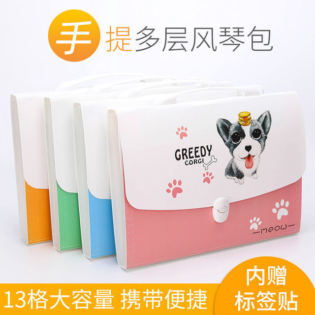 Multi-clamping package Multi-layer Katong Multi-page handheld folder Large capacity Student cute exam volume multifunction file bag