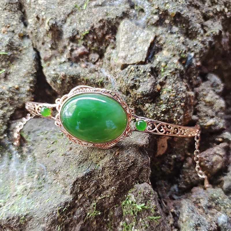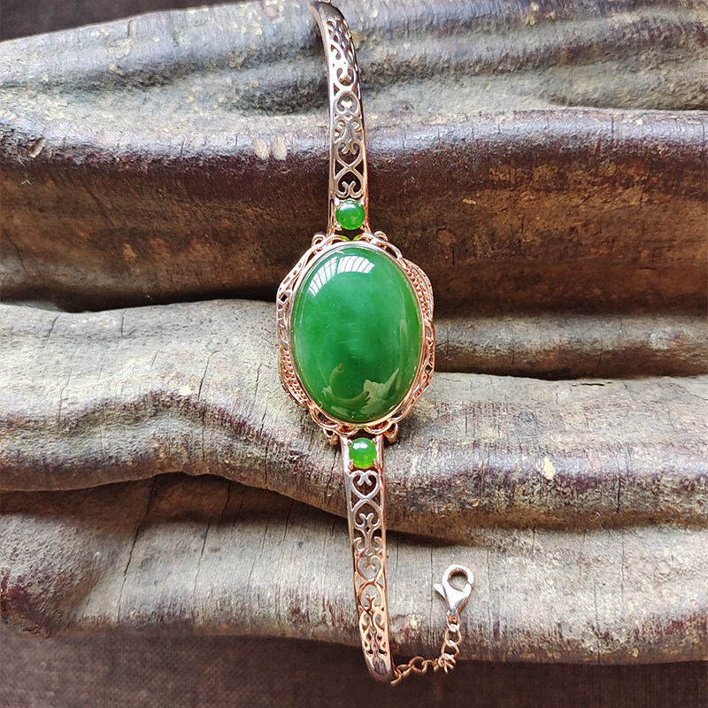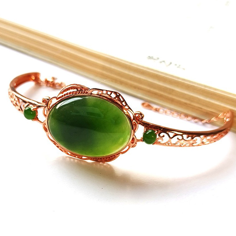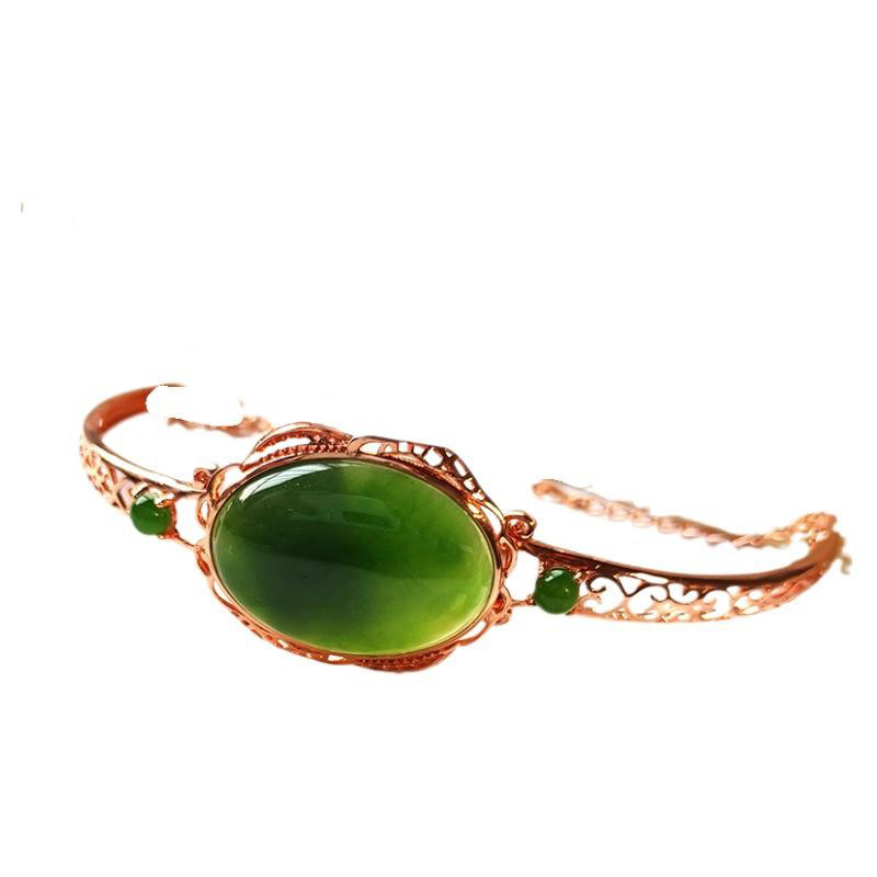 Natural Hetian jasper S925 silver female natal year jade fashion hand chisel simple jade bracelet jewelry fashion