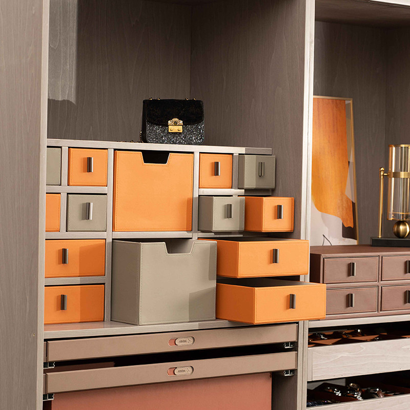 Custom drawer storage cabinet living room snack pull-out multi-layer cloakroom wardrobe high-grade leather storage cabinet