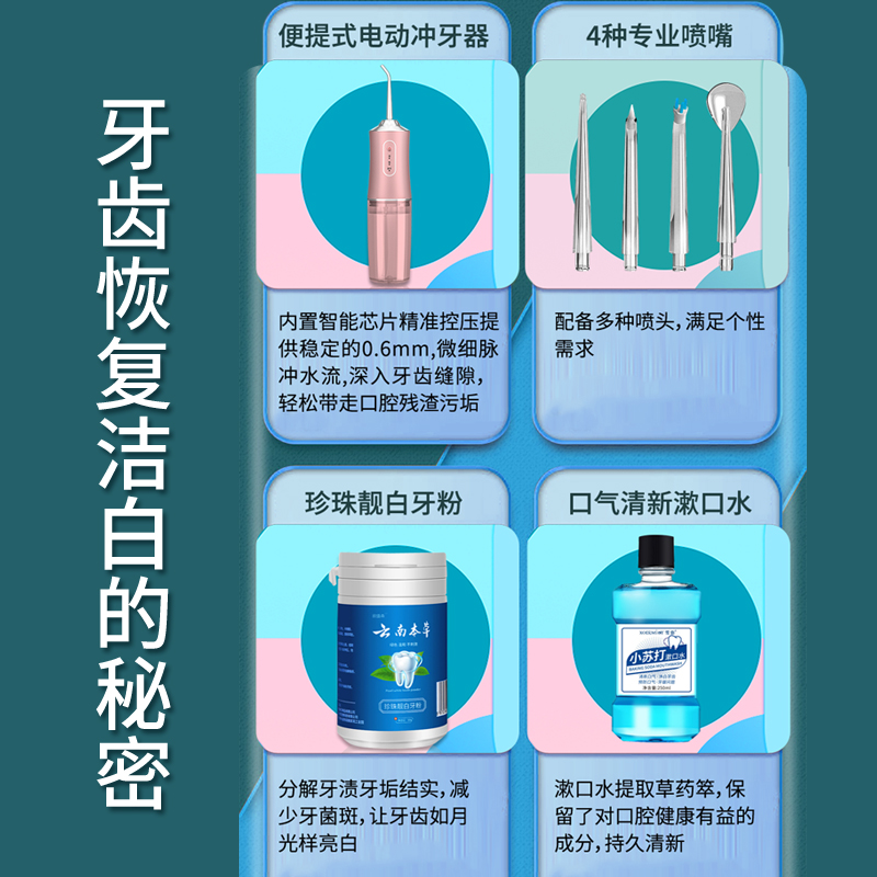 Dazzling white version (3 modes)-8 nozzles 1 bottle of mouthwash Tooth powder storage bag Dazzling version powder (3 modes)-8 nozzles 1 bottle of mouthwash tooth powder storage bag Dazzling version green (3