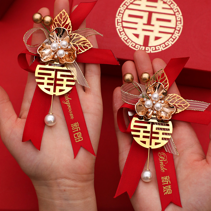 Brooch wedding with 2021 groom bridal brooding summer wedding guests to give a kiss to the groom's Chinese atmosphere brief