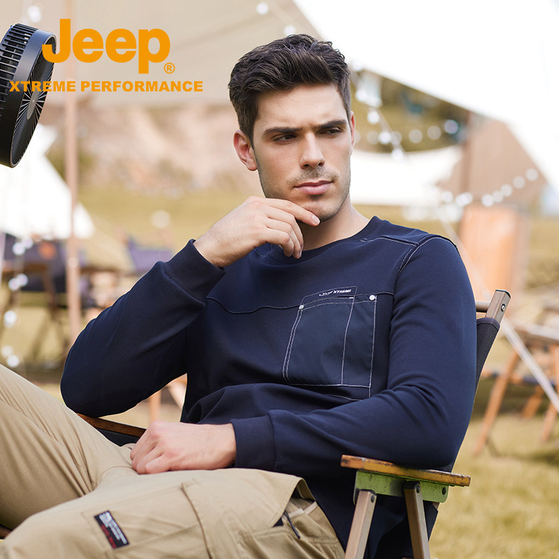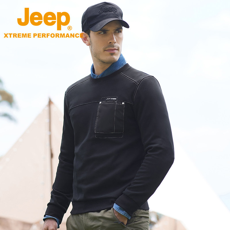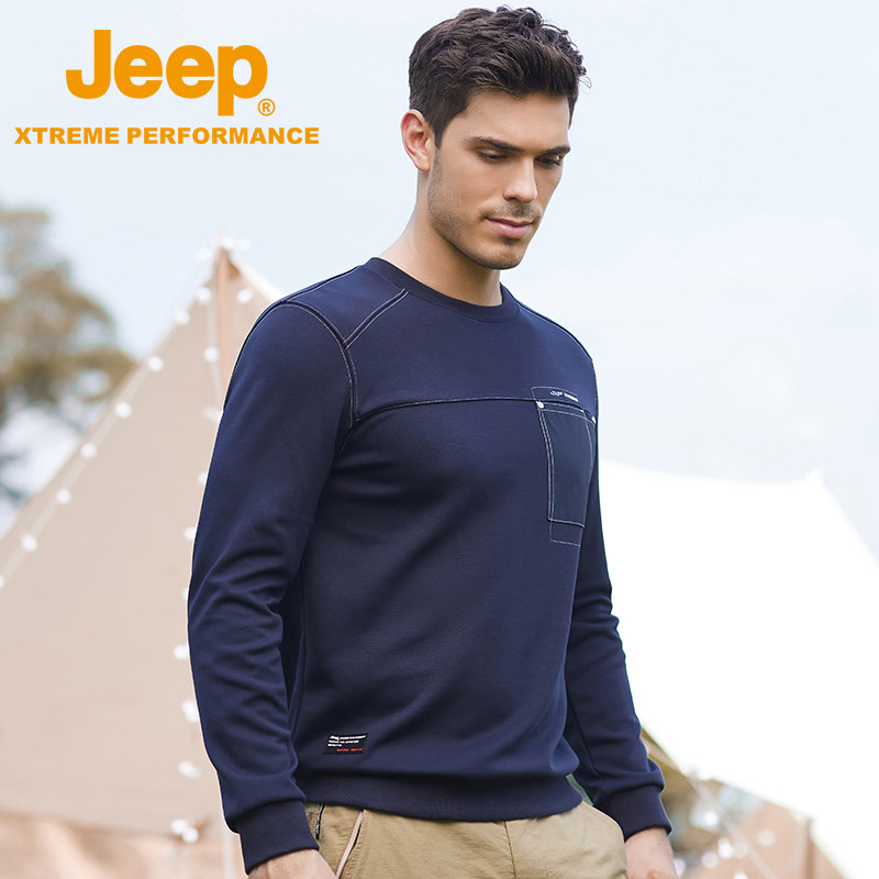 jeep jeep pullover casual top men's spring and autumn new large size thickening bottoming shirt men's round neck cotton long-sleeved T-shirt