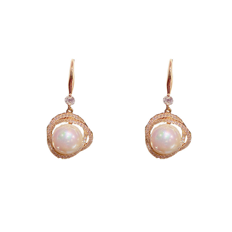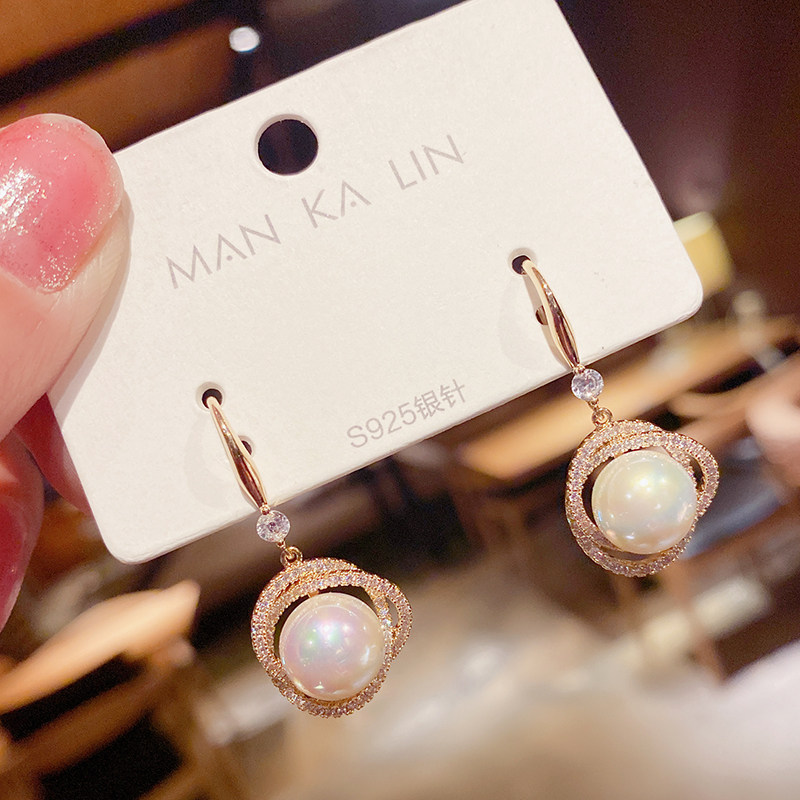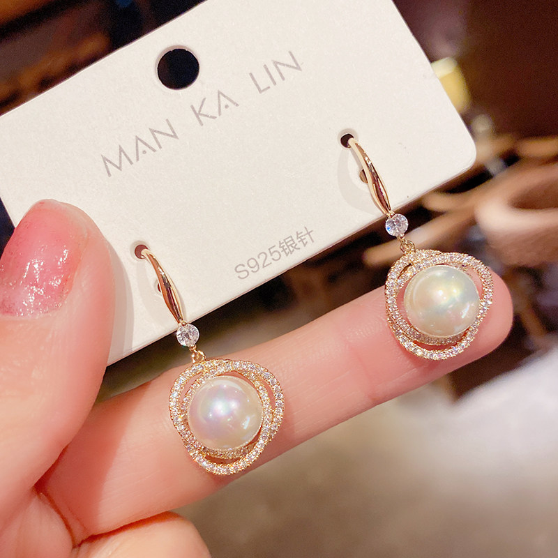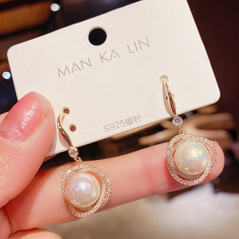 South Korea's 2021 new trendy zircon twining pearl earrings femininity atmospheric earrings net red design sense earrings