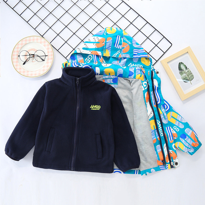 Boy's submachine clothing spring autumn clothing 2022 new CUHK child children three-in-one detachable rocking grain suede windproof jacket