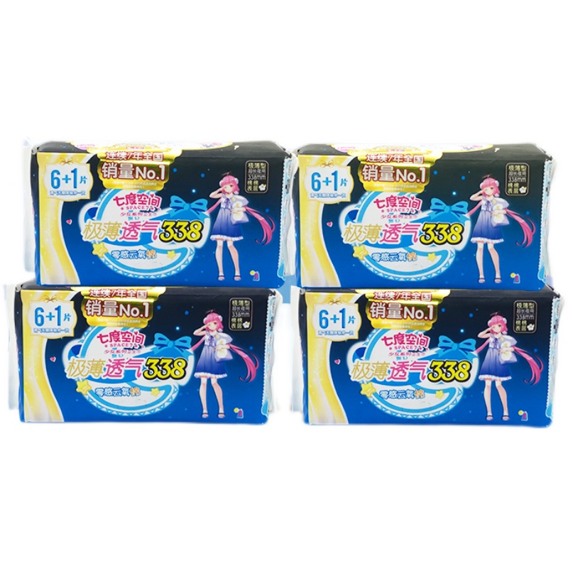 Seven-degree space extremely thin and breathable ultra-long night with 338m adolescent girl sanitary cotton zero sensation cotton 4 packs pure pro-skin