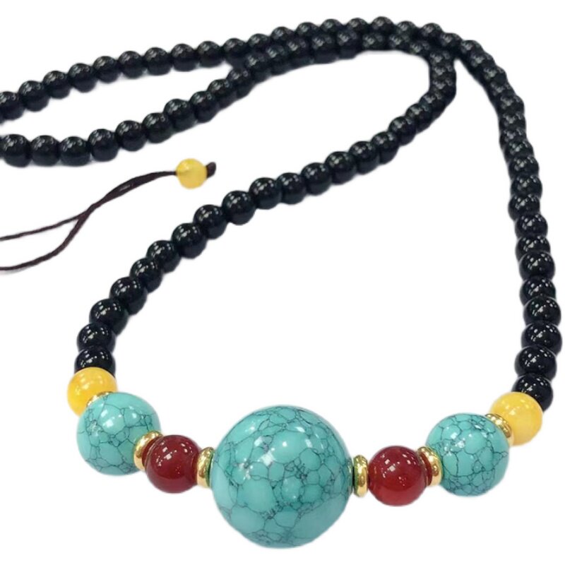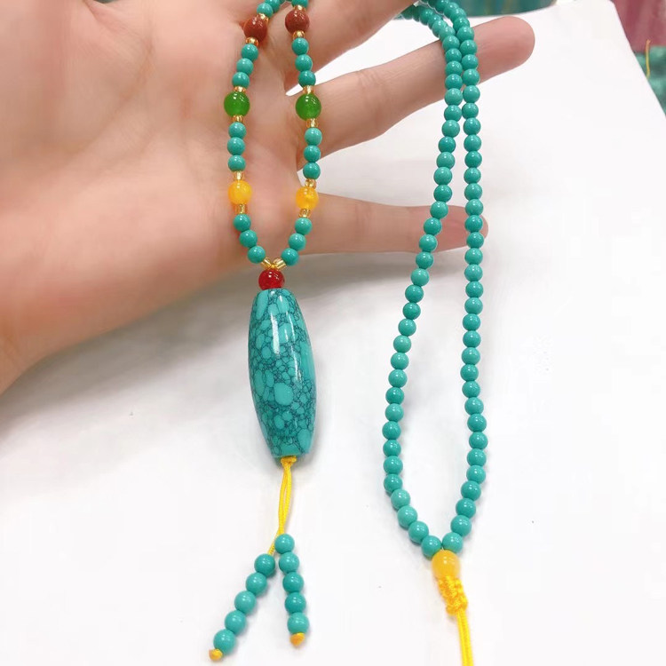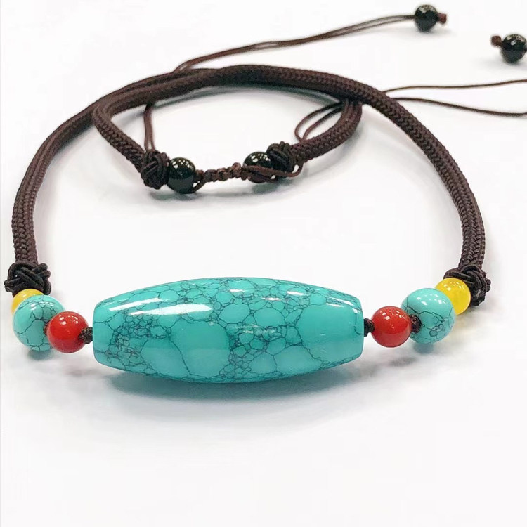 Turquoise Dzi Bead Necklace Charm Clavicle Chain Pendant Natural Raw Mineral Water Grass Pattern Net Flower Girls Fine Knitted Sweater Chain - Taobao