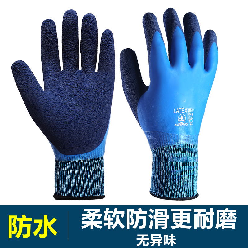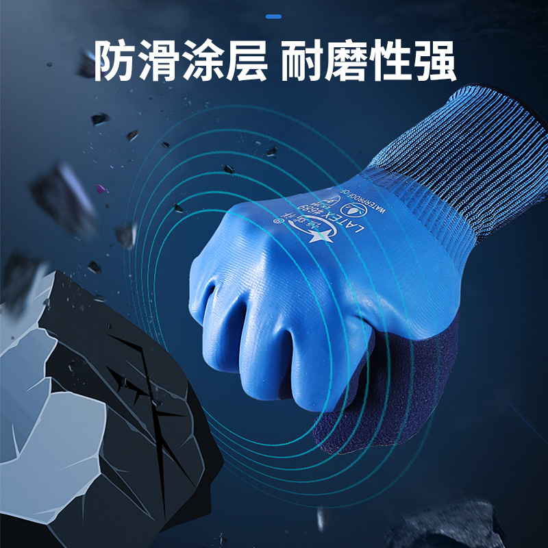 Gloves Raubao abrasion resistant working full rubber waterproof oil proof industrial working thickened rubber latex men anti-slip oil resistant