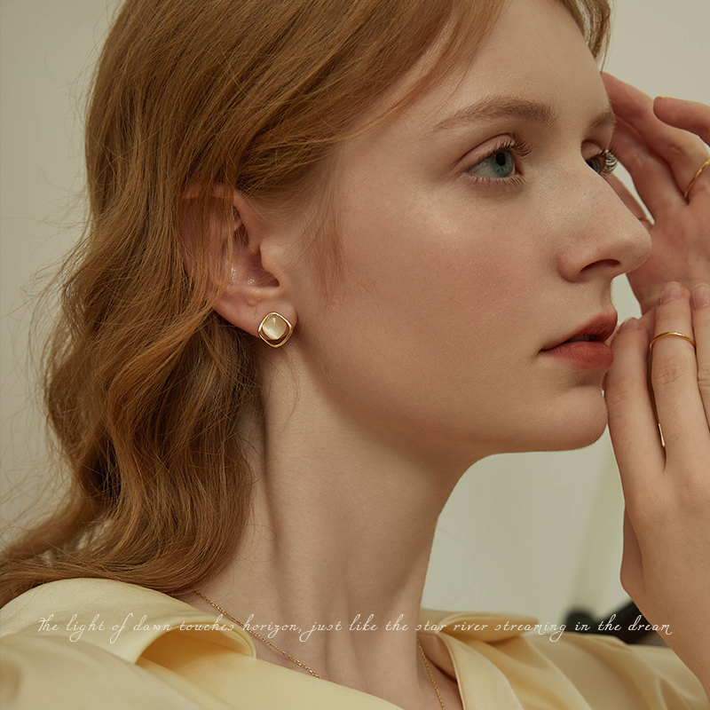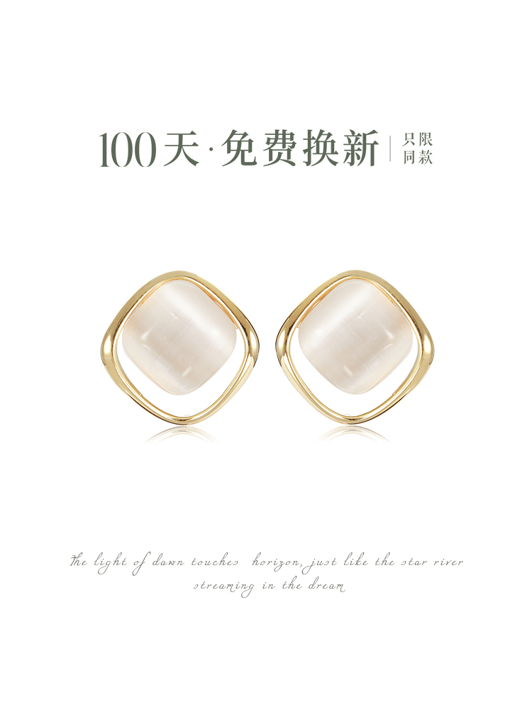 925 pure silver earrings Advanced sensation Cat Eyes Stone Temperament Earrings Female Light Lavish Autumn Winter New small crowddesign Sensation Earrings-Taobao