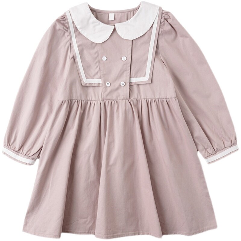 Girl navy dress 2021 New Style fashion pink doll collar skirt children autumn dress