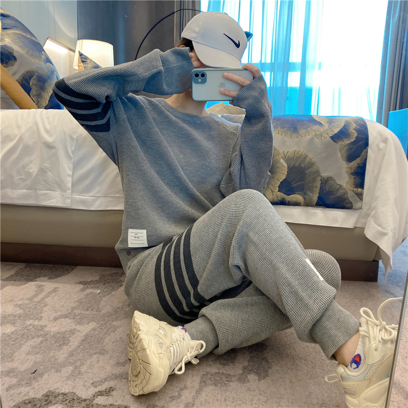 Foreign-sent Aging Leisure Sports Suit Women Spring Autumn Tb Round neckline Knitted Sweatpants Two Pieces of Knitted Sweatpants