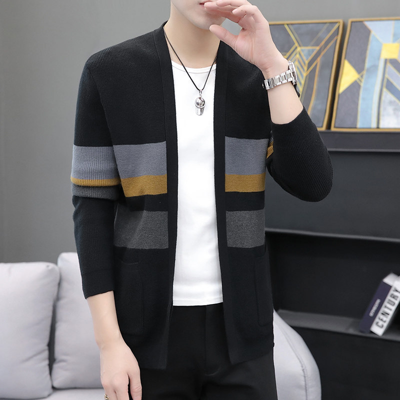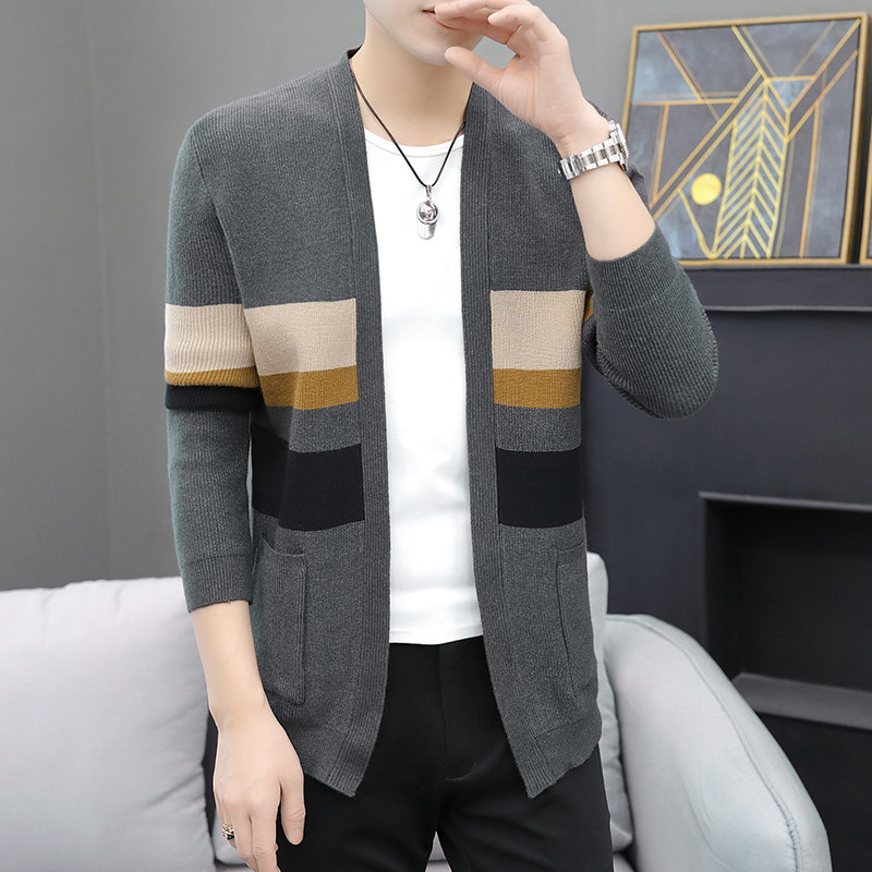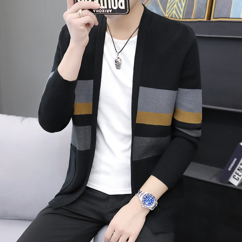 Striped Knitted Cardigan Sweater Jacket Men's Spring and Autumn Thin Korean Slim Fashion Trend Early Autumn Men's Shirt
