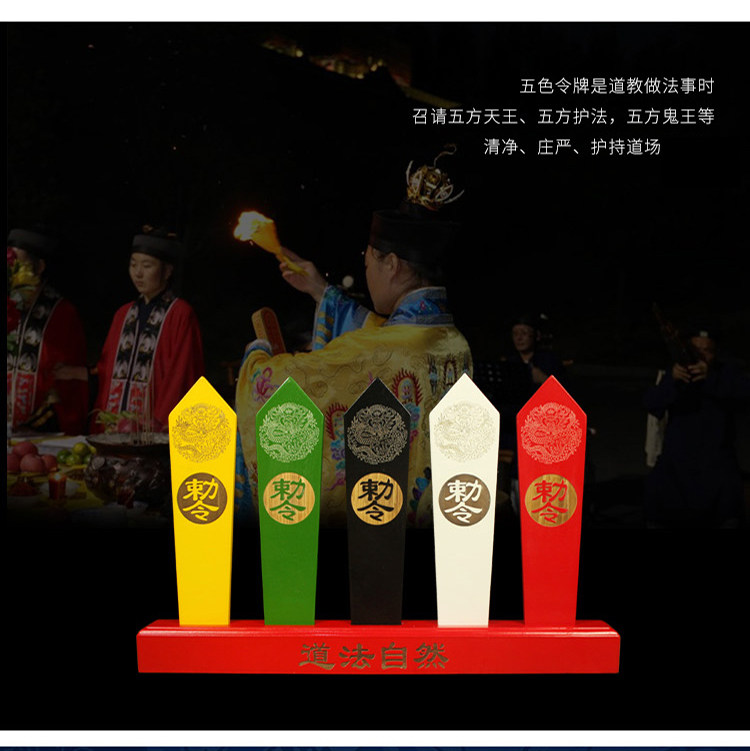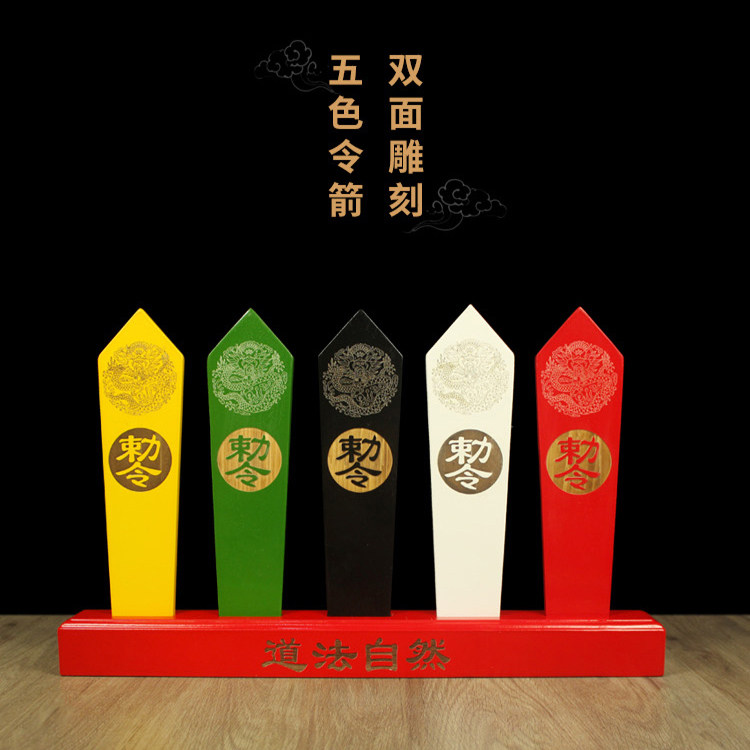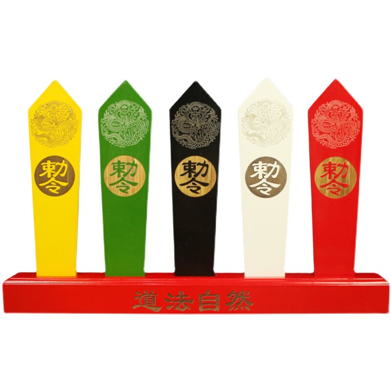 Taoist Token Magic Instrument Taoist Edict Five-Color Dragon Pattern Carved Base DaoFa Naturally Order Arrow Daoist Altar Supplies