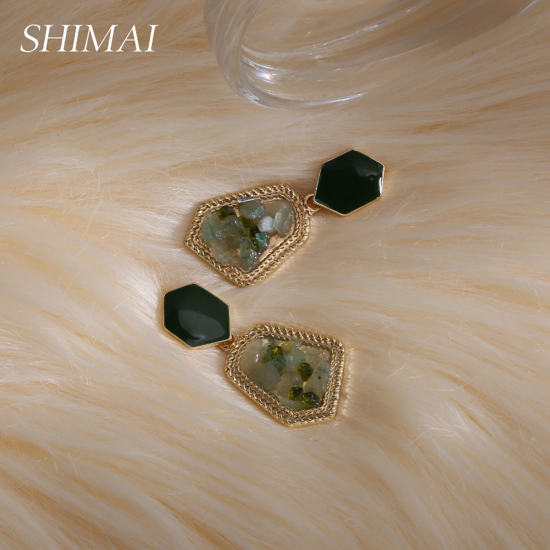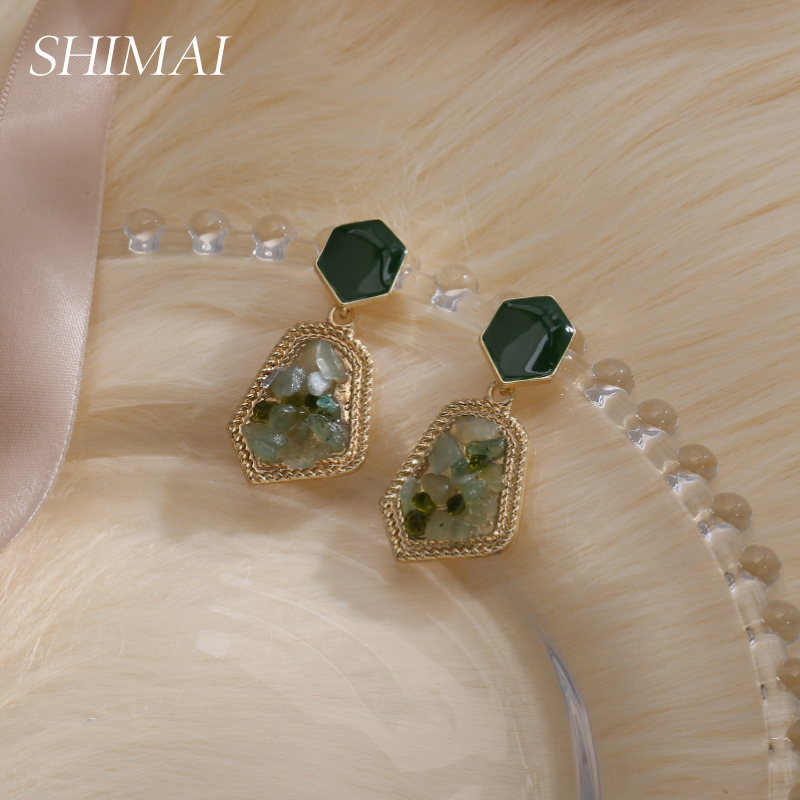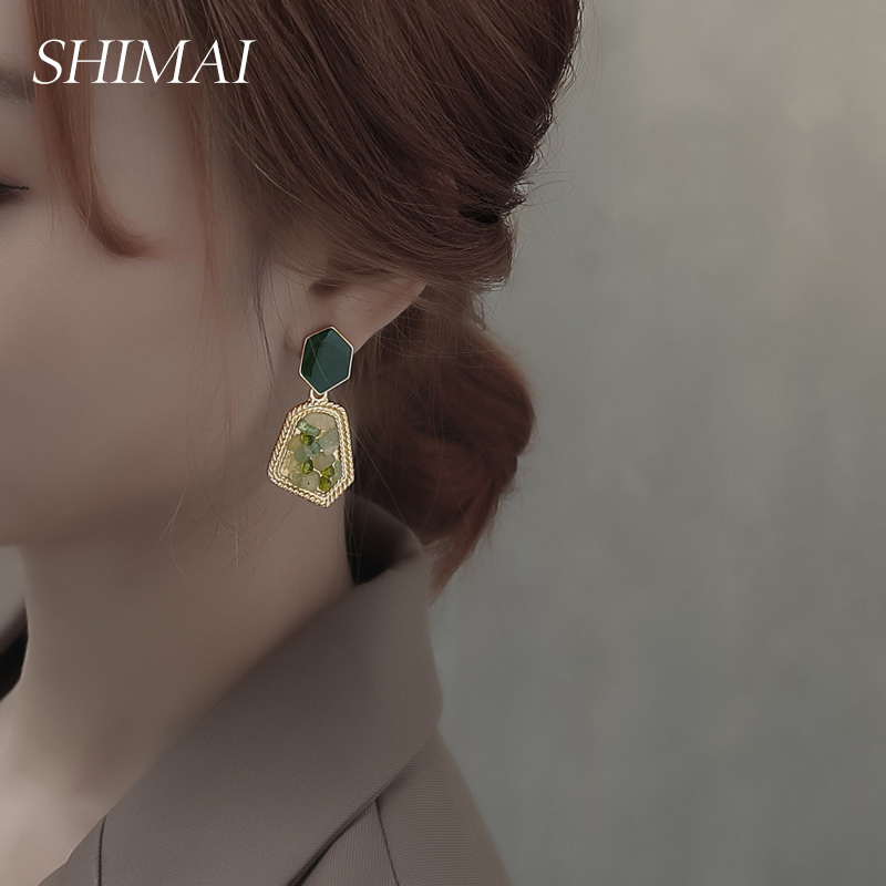 Irregular Earrings Woman Summer Green Unique Light Extravagant Earrings 2022 New Tide Advanced Senses Geometric Retro Ear Accessories