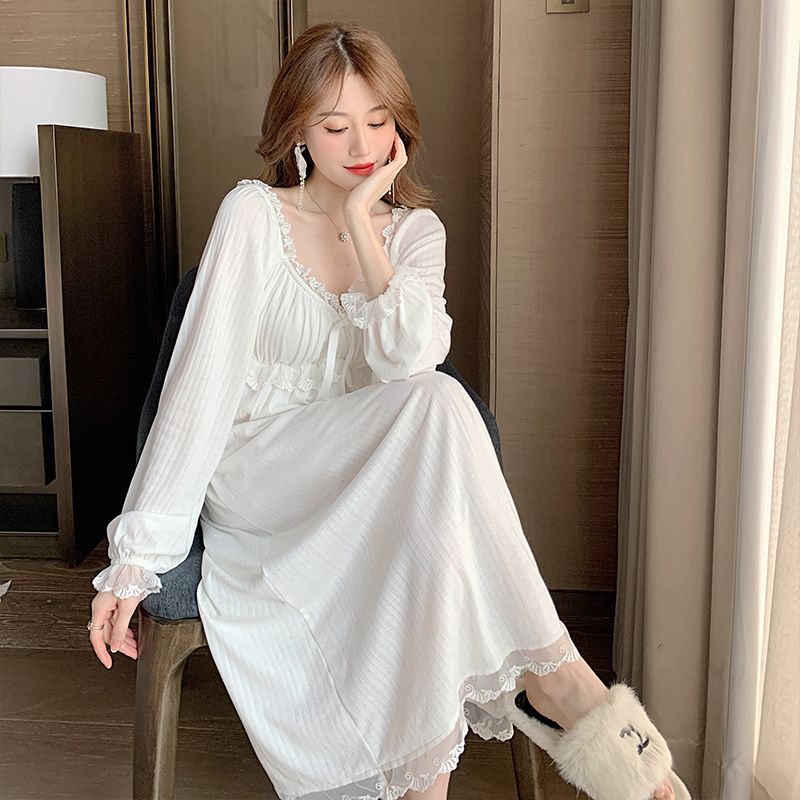 Very Fairy Sleeping Dress Woman Autumn Sexy Pure Desire Palace With Chest Cushion Pyjamas Sweet Princess Wind Knit Long Sleeve Home Suit