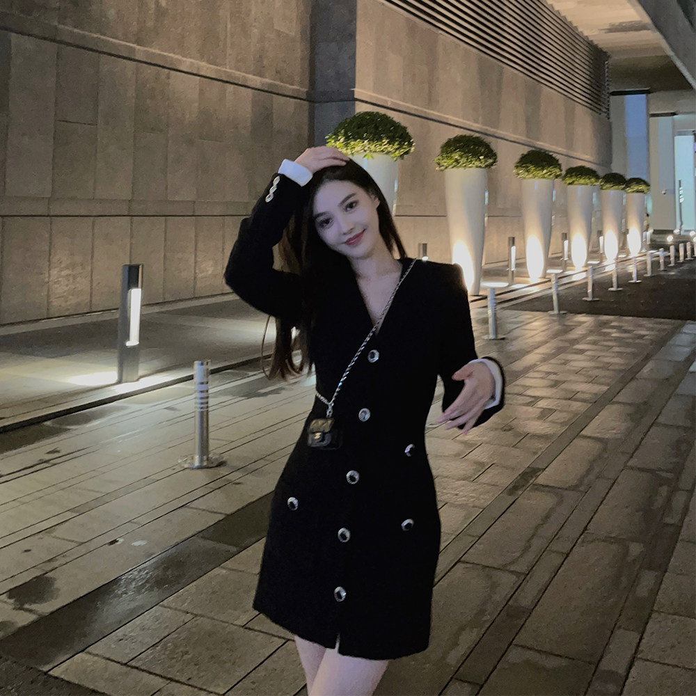 nicky Xiaoxiang style retro palace style black dress long section fairy early autumn temperament long-sleeved new women's clothing