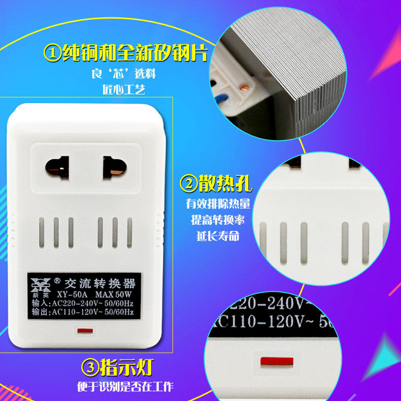 Voltage Power Converter Japan American Appliances 220V Turn 110-120V Socket New British XY-50A Transformer-Taobao