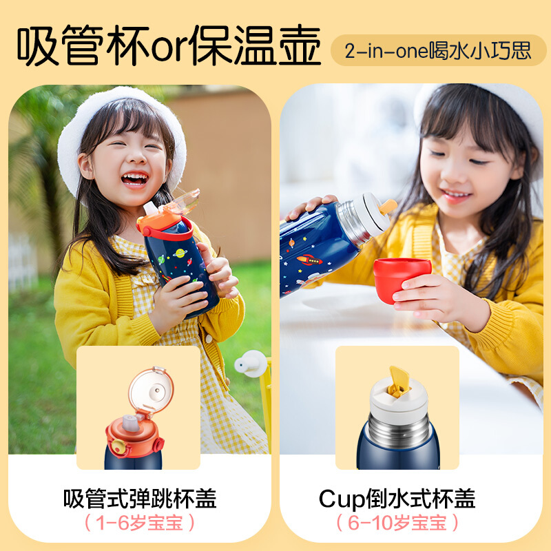 (Duckbill Straw Cup - Space Flying Elephant 400ml) Send Original Cup Set Cute Fun Rice One Cup Double Cover - Little Yellow Man Wit Yellow 600ml Send Original Embroidered Cup Set Cup Brush One Cup Double