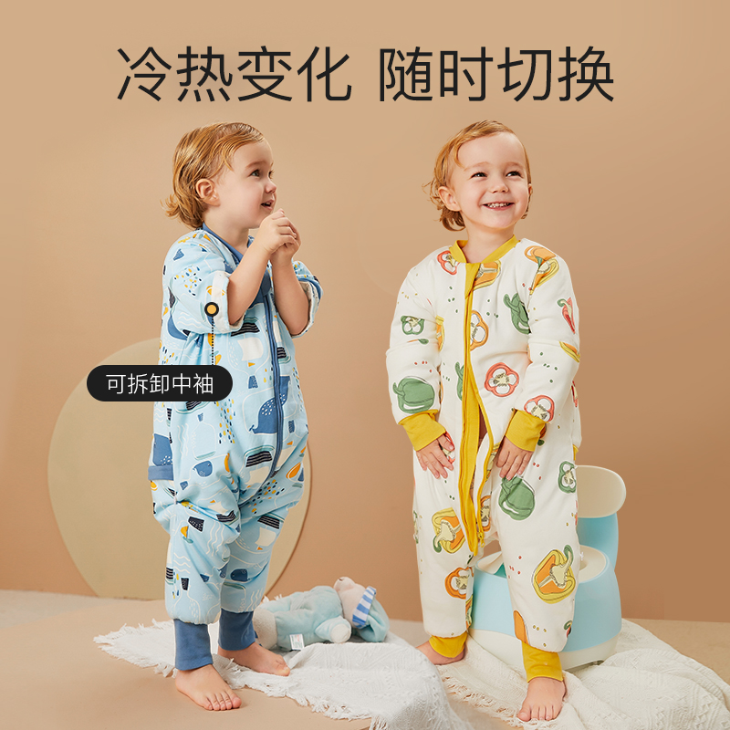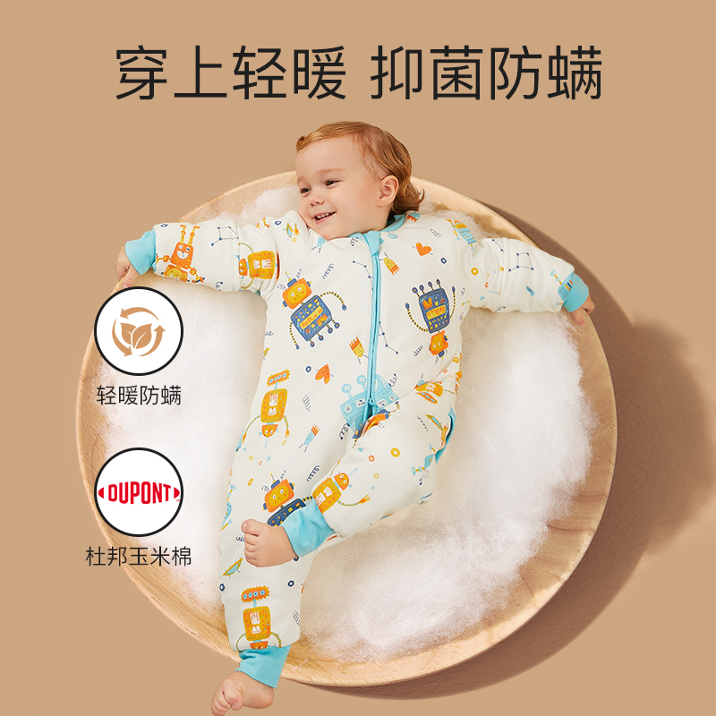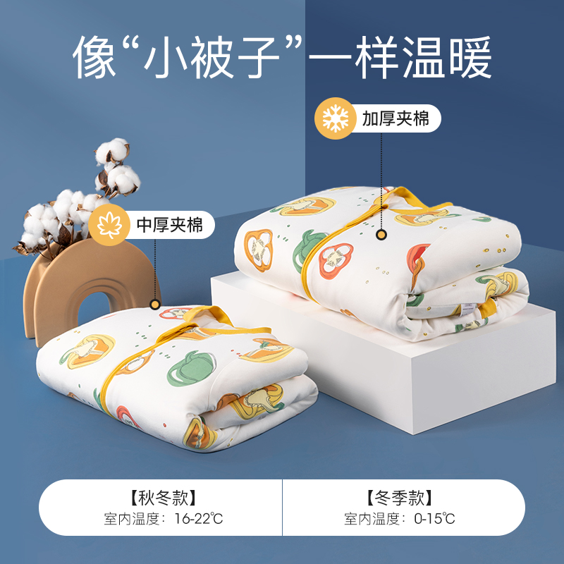 Jingqi baby sleeping bag spring, autumn and winter constant temperature baby pure cotton split legs anti-kick quilt thickened and kept warm for children in four seasons
