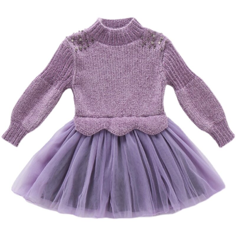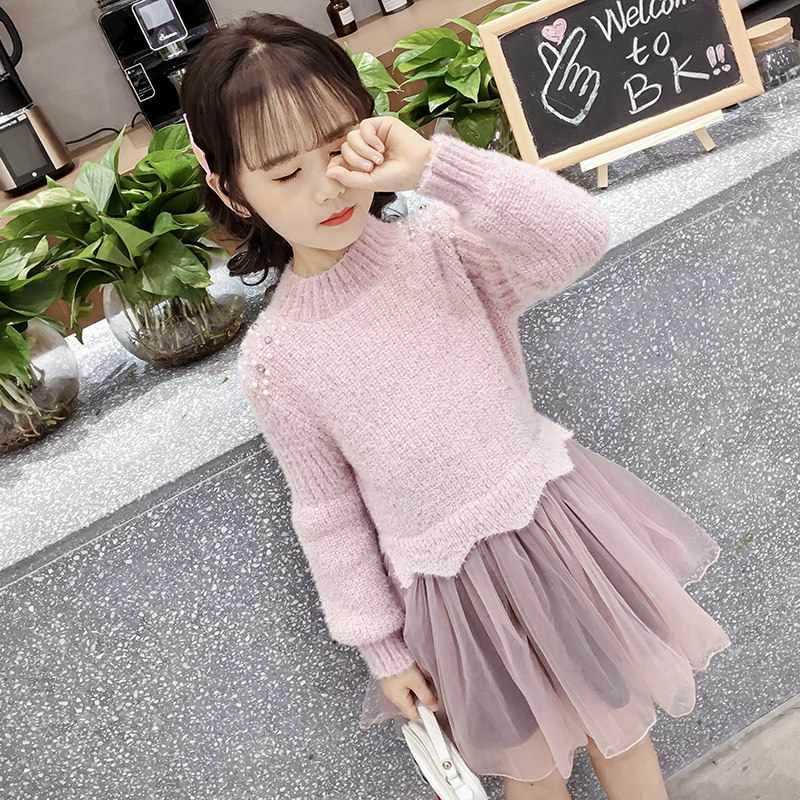 Girls' Foreign Princess Dress 2022 Autumn New Children's Skirt in The Big Boy Stitched Knitted Sweater Gauze Skirt