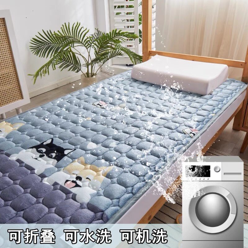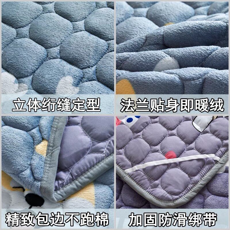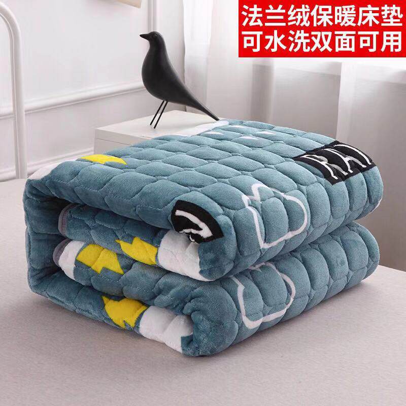Flannel mattress pad dormitory single student plus velvet warm mattress cushion home milk coral wool blanket