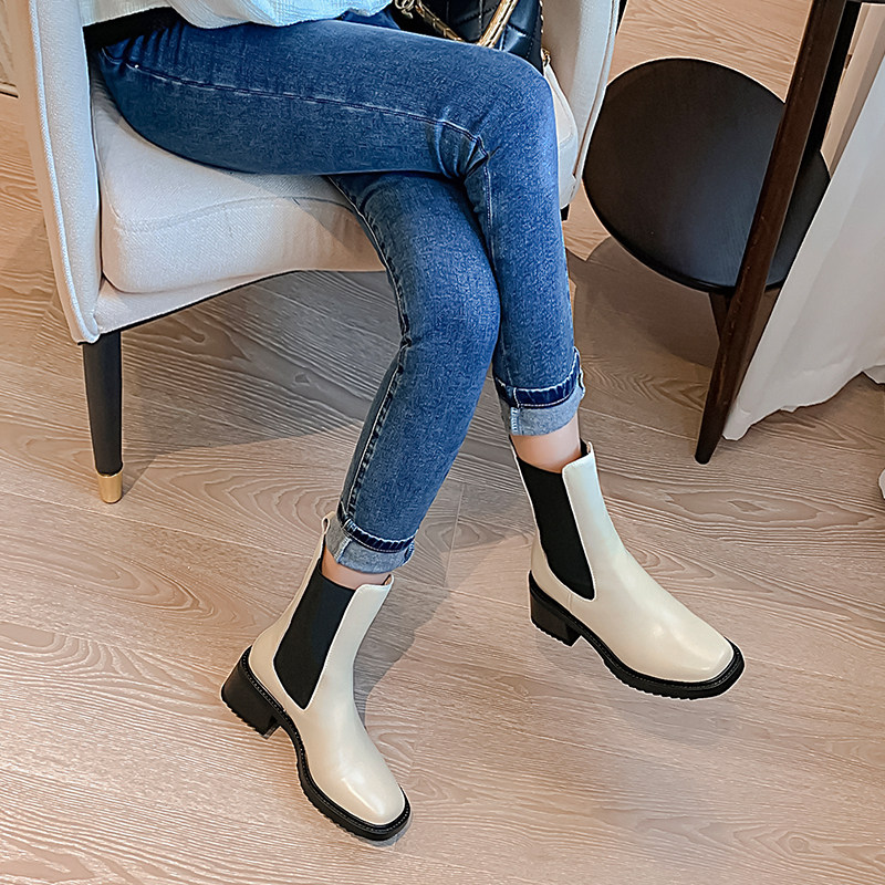 Chelsea Short Boots Female Spring and Autumn Single Boots are leather and faint head of the new white Martin Boots in 2021