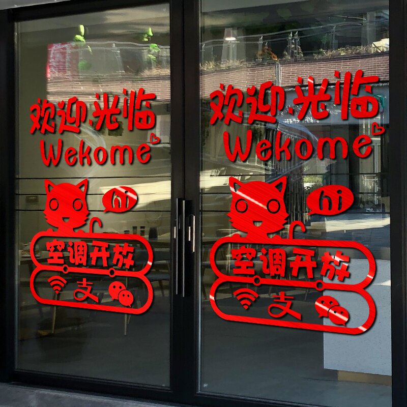 Shop business hours stickers milk tea nail shop decoration stickers welcome to glass door stickers sliding door wall stickers