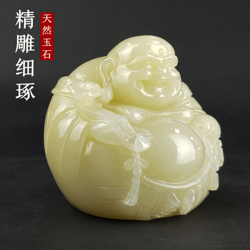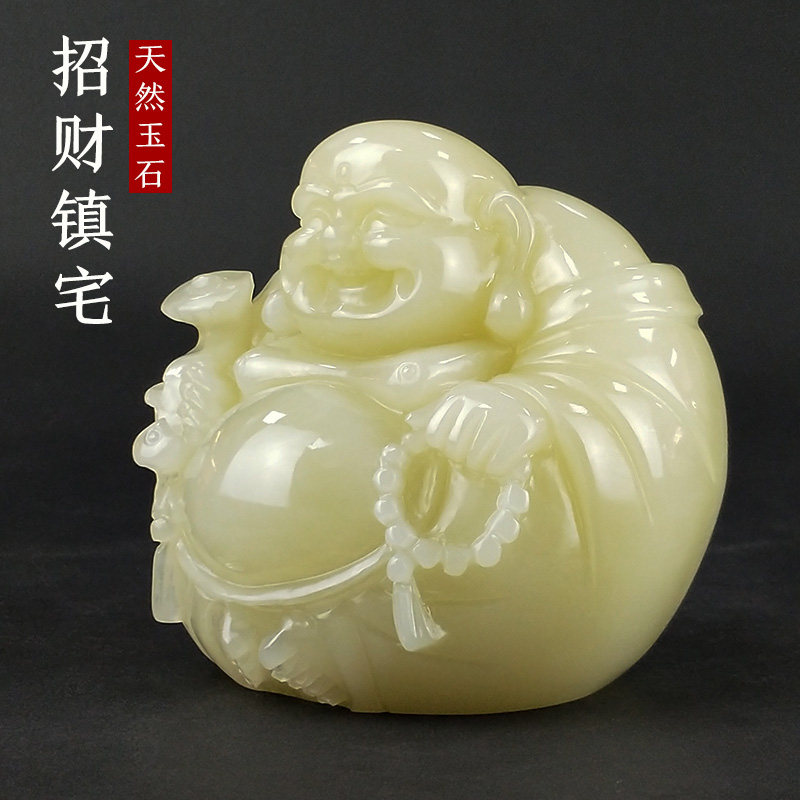 Natural jade Buddha statue Maitreya Buddha worships tribute crafts TV cabinet porch wine cabinet decoration in the flowing water