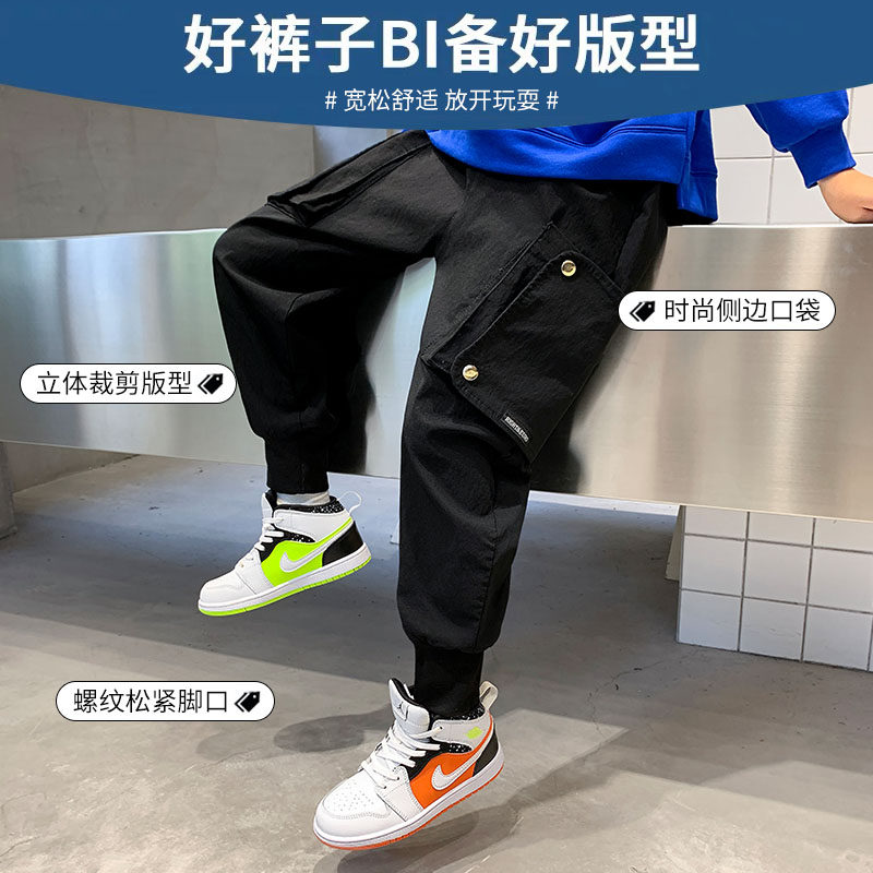 Boy pants Children's work pants CUHK Boy boy Spring and autumn money Long pants 2022 new spring clothes Children Clothing Bouquet Pants