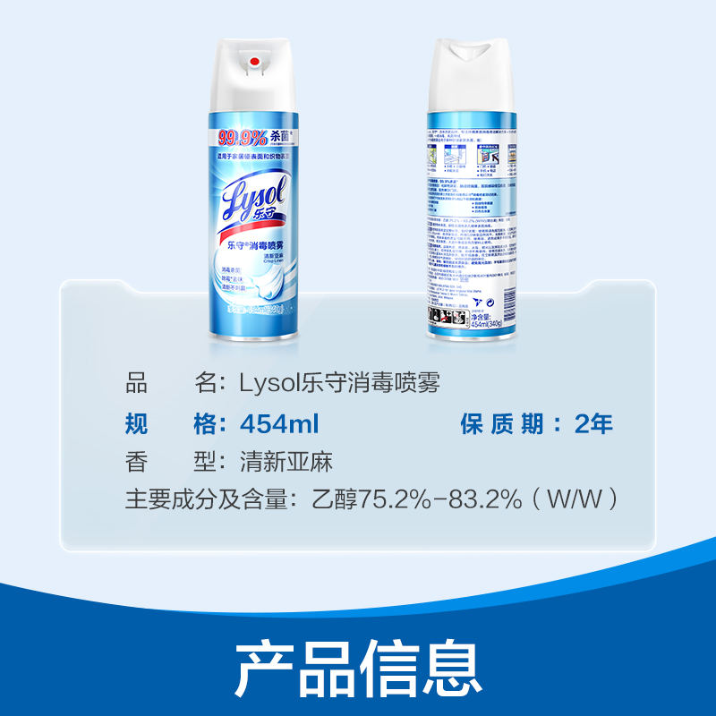 Lysol Lehold Disinfection Spray 454ml75 Degree Alcohol Household Disinfectant Clothing Germicidal Room Indoor Spray