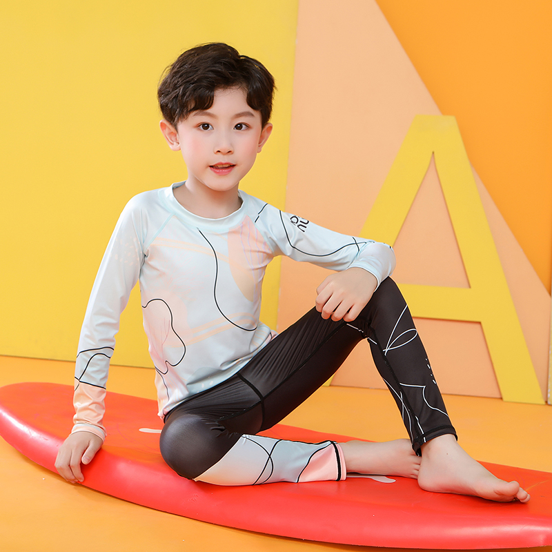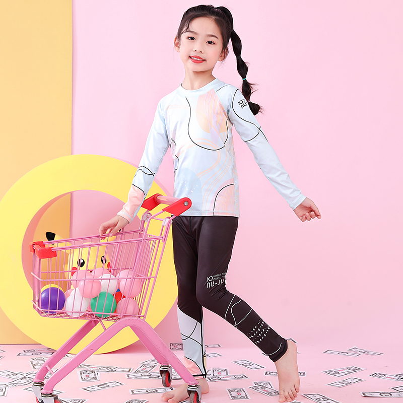 Nu-June children's swimsuit boy and girl swimsuit swimsuit in large children's sun - protective long sleeve speed and warm sea
