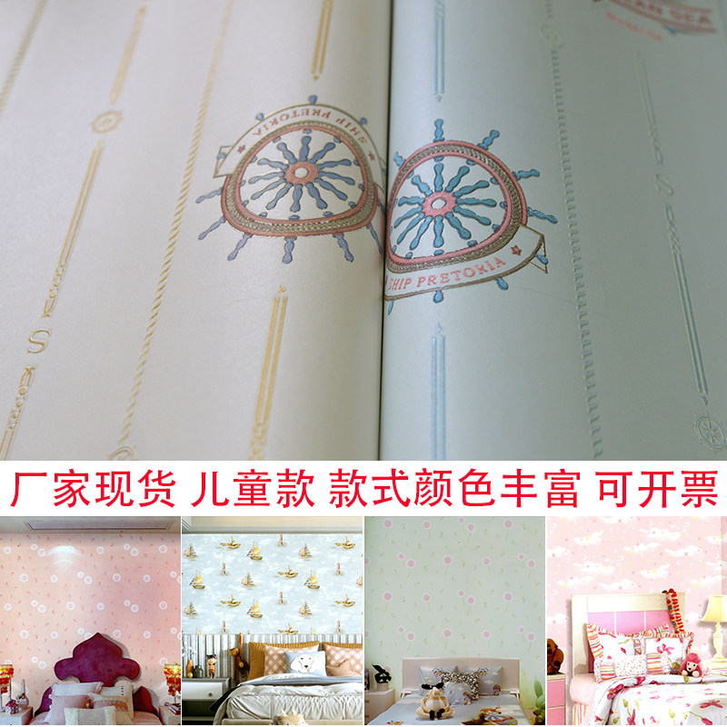 Unwoven Cloth Embossing PVC Cartoon Cute Children Room Wallpaper Boy Mediterranean Girl Pink And Cute Wind Wallpaper
