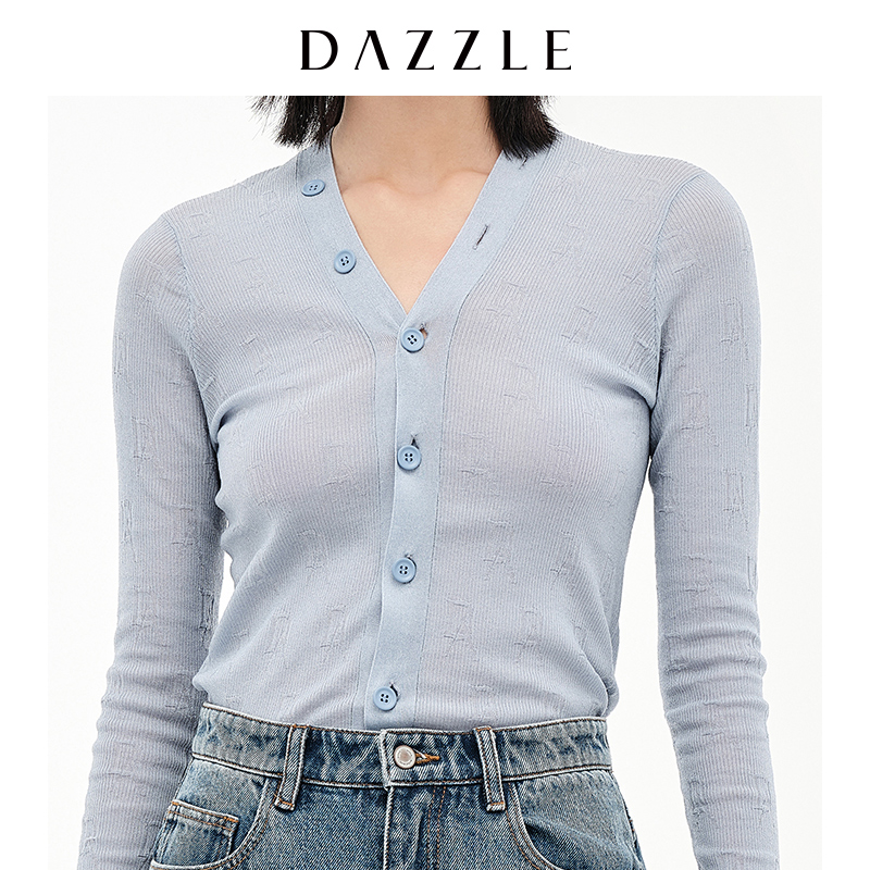 DAZZLE ground vegan summer new French style letter jacquard elastic knit cardigan
