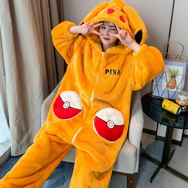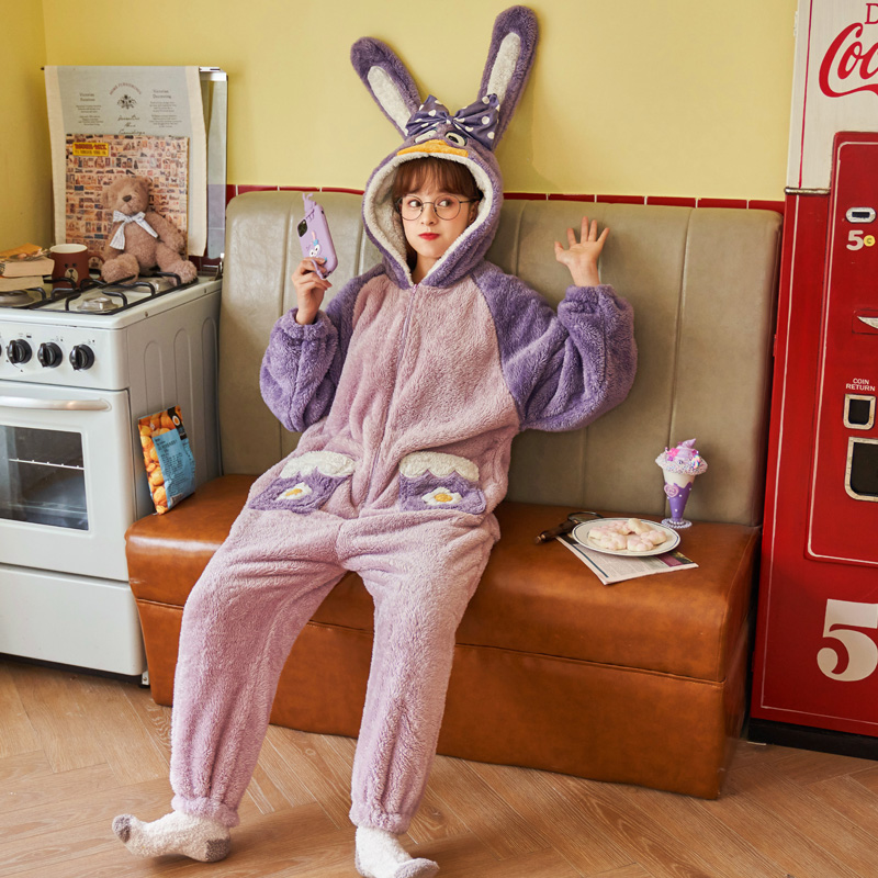 Want to have you with imported bags ~ Coral Suede Pajamas Woman Autumn/Winter Even Body Cartoon Cartoon Cartoon Cute Flannel Suede Home Clothes