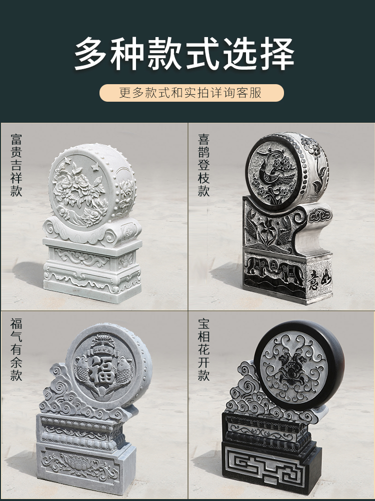 Stone Drum Door Mound Holding Drum Stone Courtyard Doorway Swing Piece Home Green Stone Imitation Ancient Fu Character Carved Stone Mound Stone Carved Door Mound