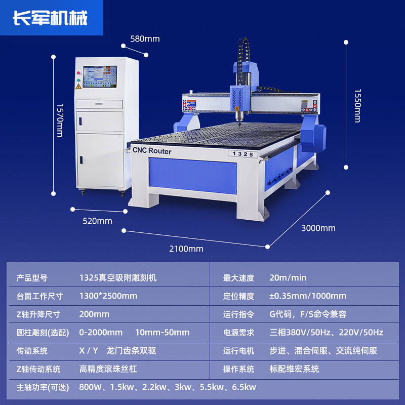 Changjun 1325 woodworking edge engraving machine large-scale automatic advertising acrylic pvc foam CNC cnc fine carving