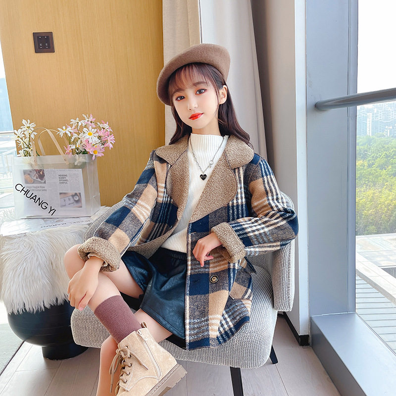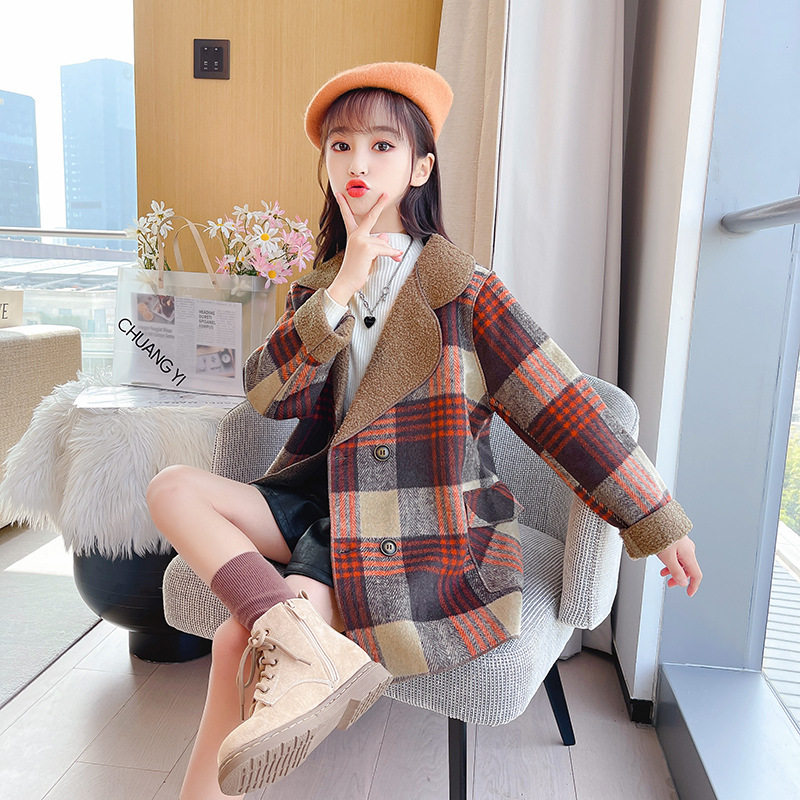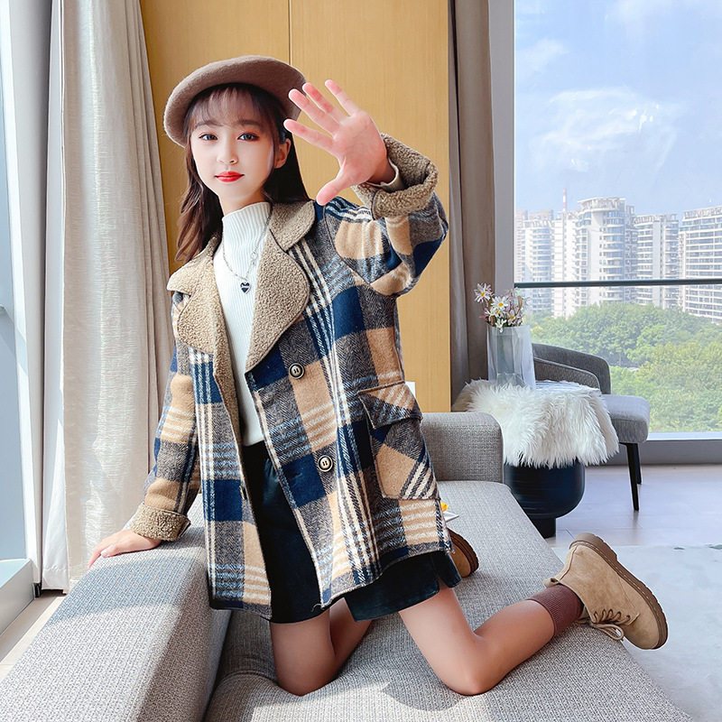 Girls Lamb Weed Coat in autumn and winter clothing thickened 2021 Japanese Han Edition children in long - range plus coat girls